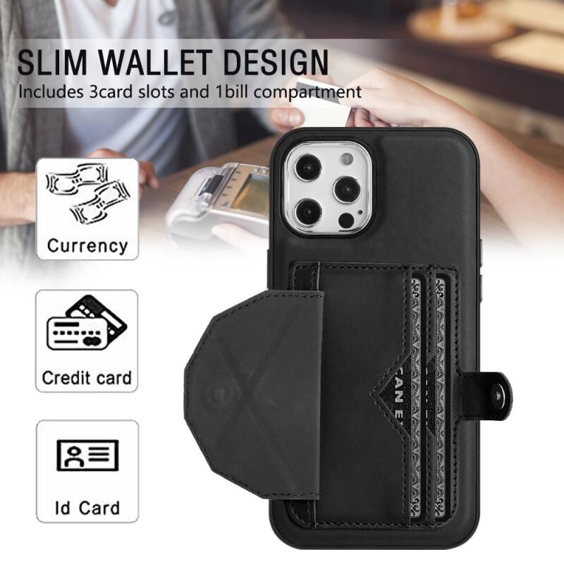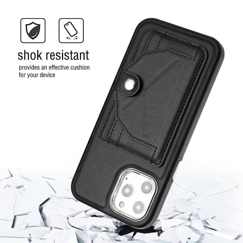 For iPhone 12 Pro Max Shockproof Leather Phone Case with Card Holder(Black)