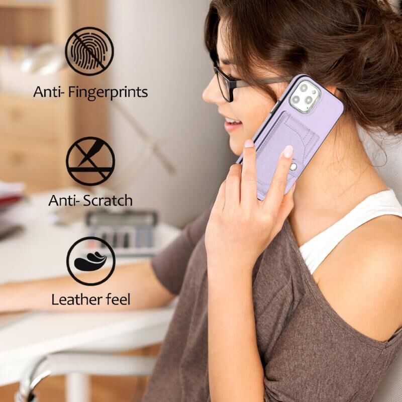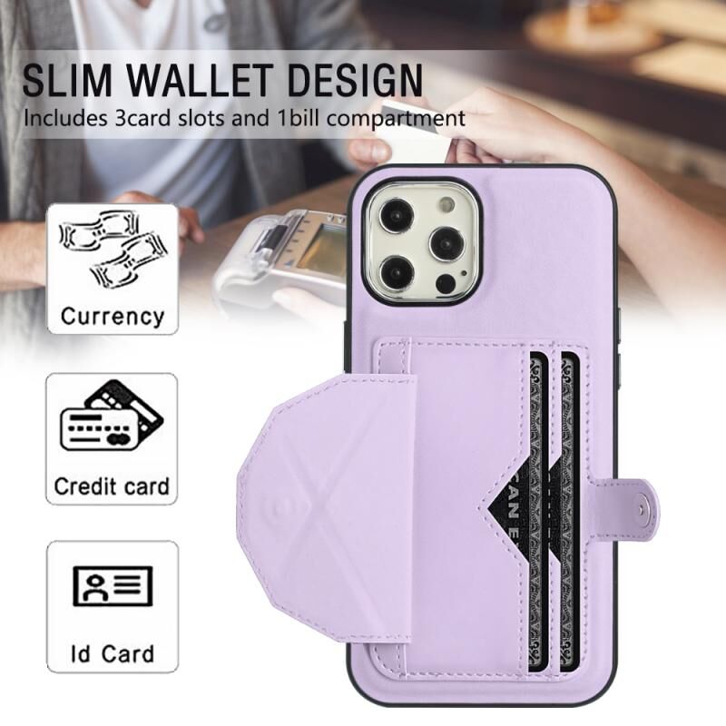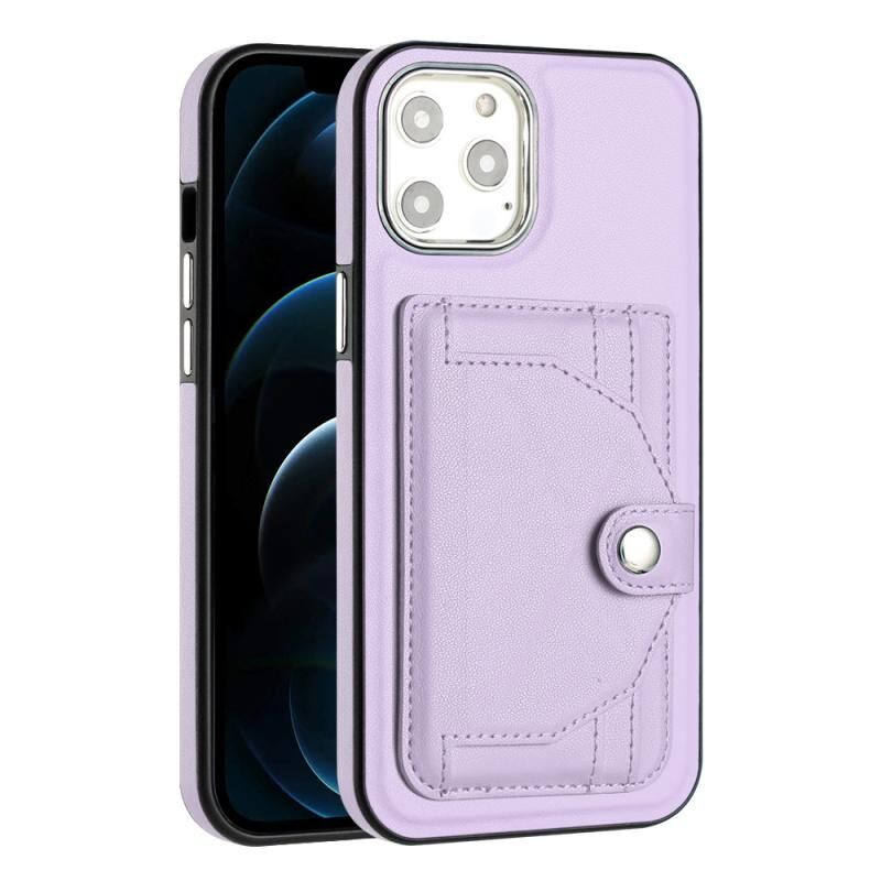 For iPhone 12 Pro Max Shockproof Leather Phone Case with Card Holder(Purple)