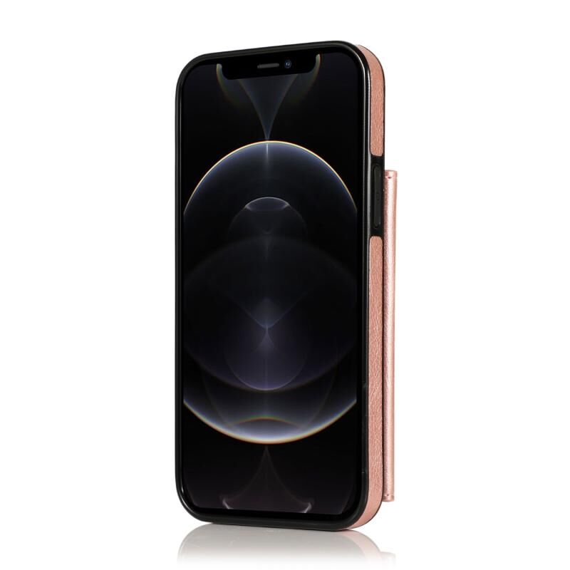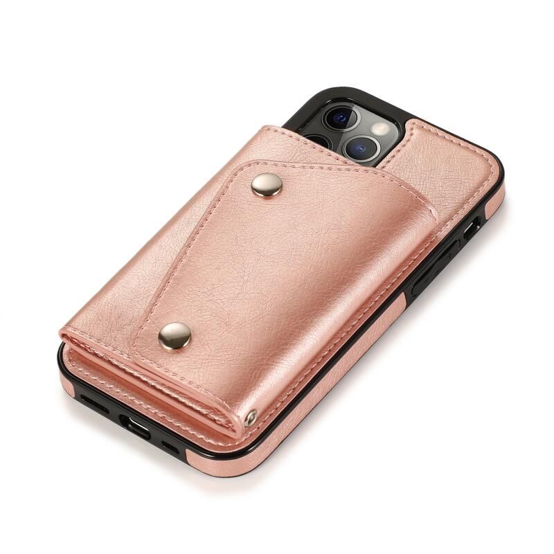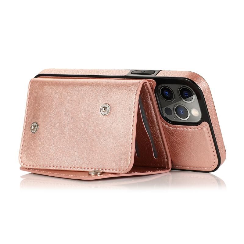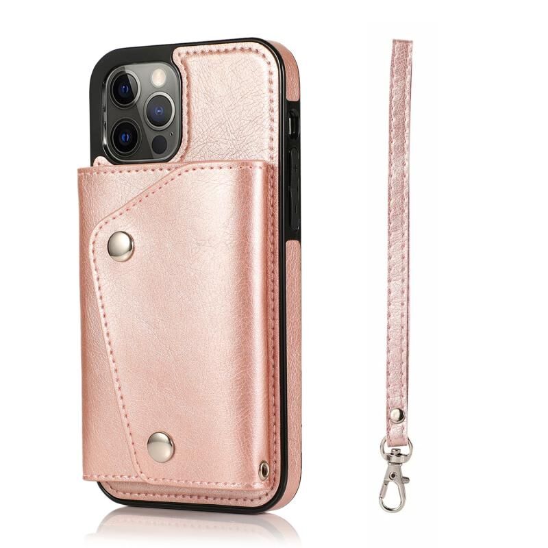Θήκη για iPhone 12 Pro Max ανθεκτική στις κρούσεις από PU + TPU δέρμα με θήκες για κάρτες & βάση στήριξης & κορνίζα φωτογραφιών & πορτοφόλι & κορδόνι (Μαύρο)