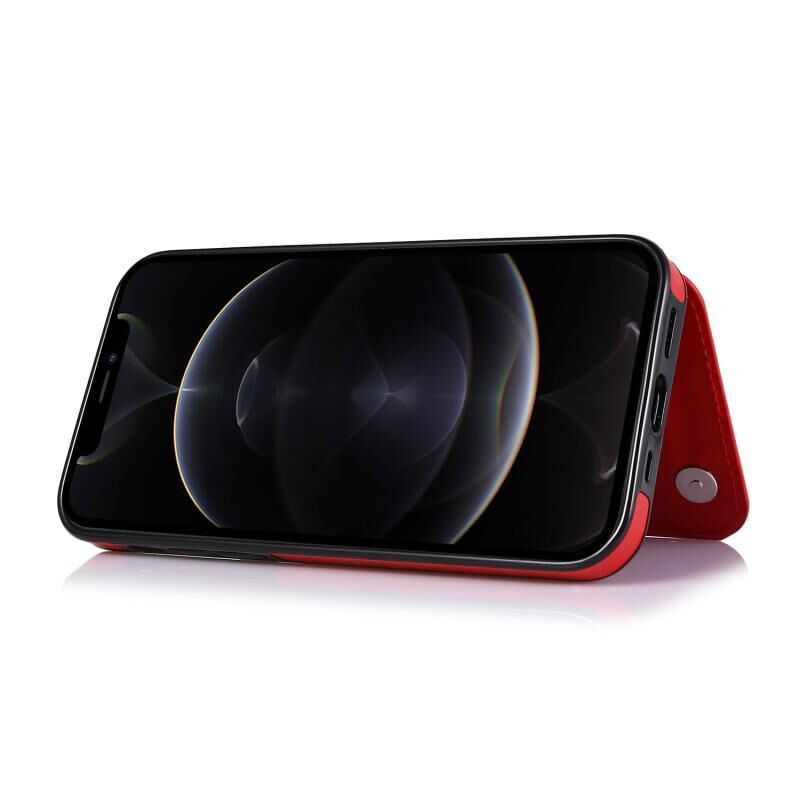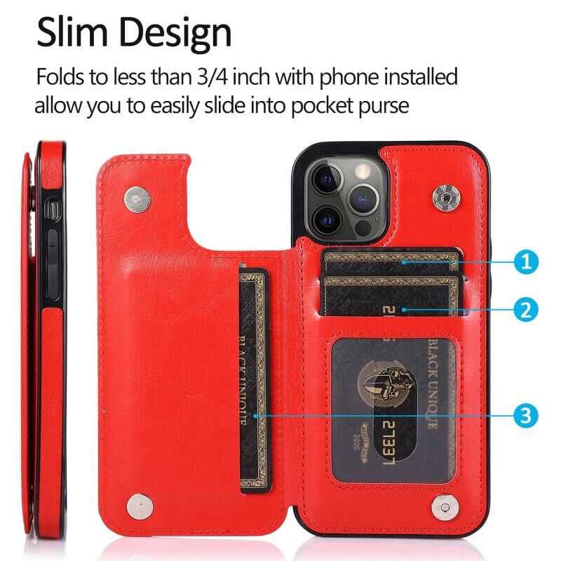 Θήκη για iPhone 12 Pro Max ανθεκτική στις κρούσεις από PU + TPU δέρμα με θήκες για κάρτες & βάση στήριξης & κορνίζα φωτογραφιών & πορτοφόλι (Μαύρο)