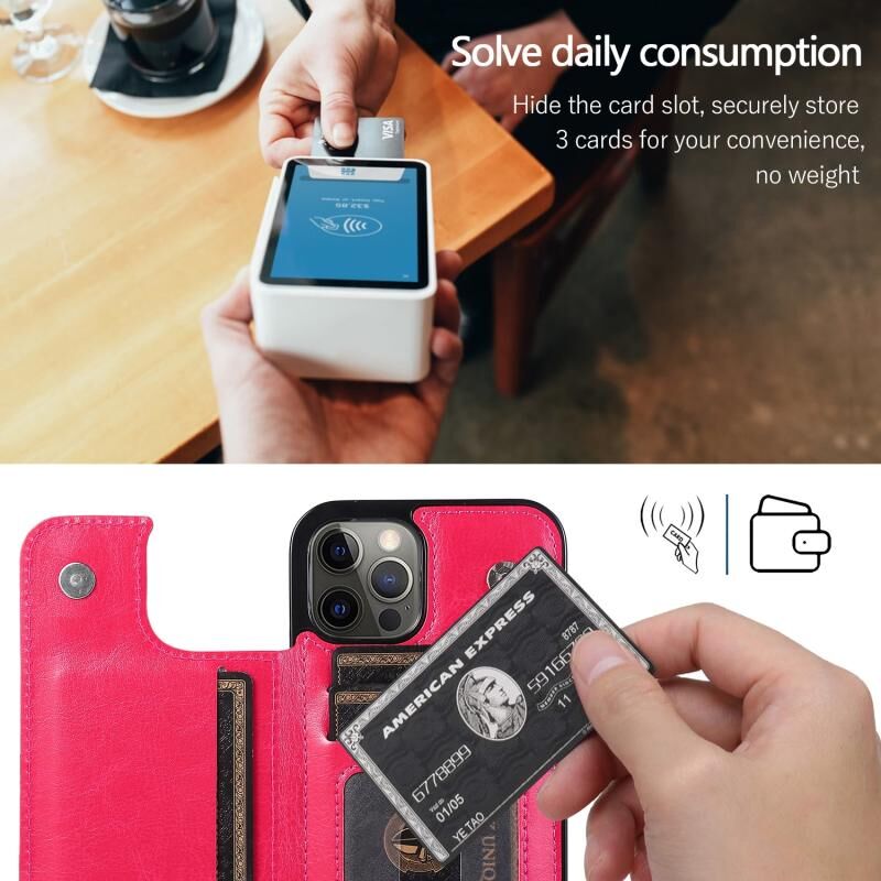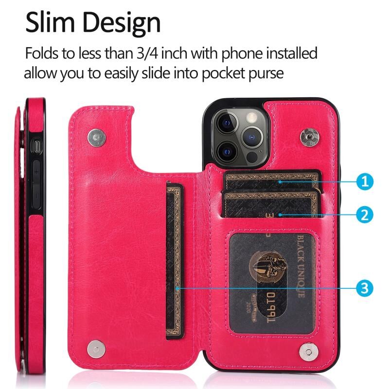 Θήκη για iPhone 12 Pro Max ανθεκτική στις κρούσεις από PU + TPU δέρμα με θήκες για κάρτες & βάση στήριξης & κορνίζα φωτογραφιών & πορτοφόλι (Μαύρο)