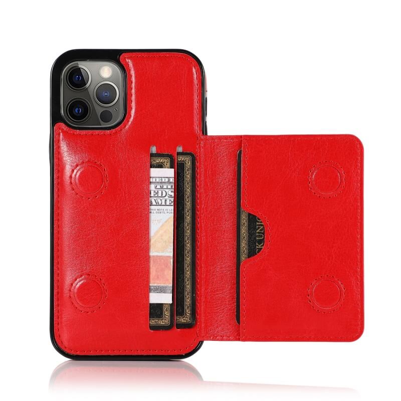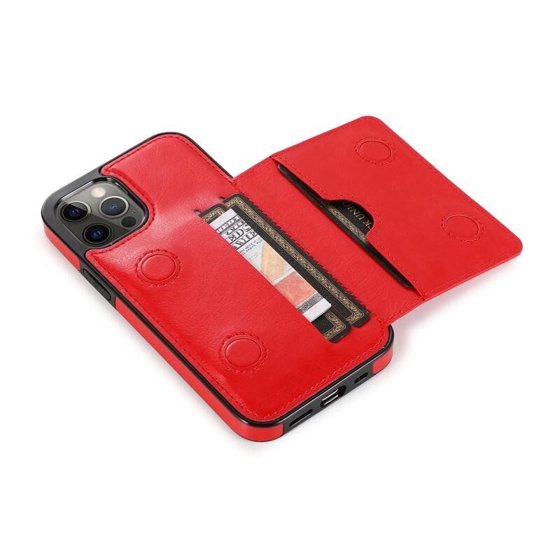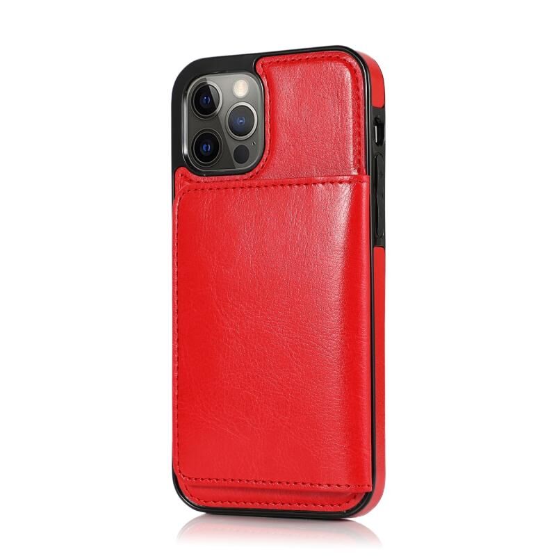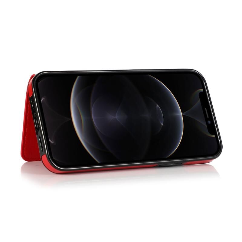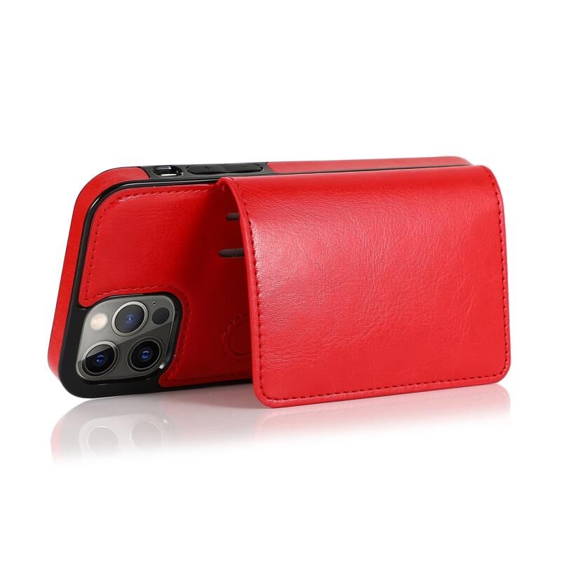 Θήκη προστασίας για iPhone 12 Pro Max ανθεκτική στις κρούσεις από PU + TPU με υποδοχές καρτών & βάση στήριξης (Μαύρο)