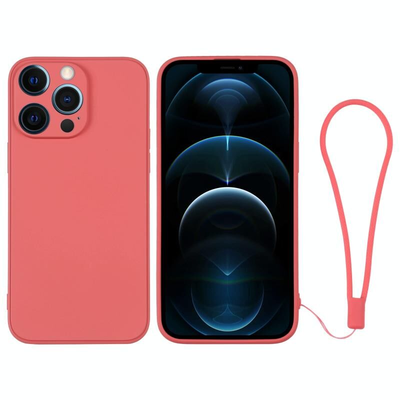 Θήκη σιλικόνης για iPhone 12 Pro Max με λουρί καρπού (πορτοκαλί-κόκκινο)