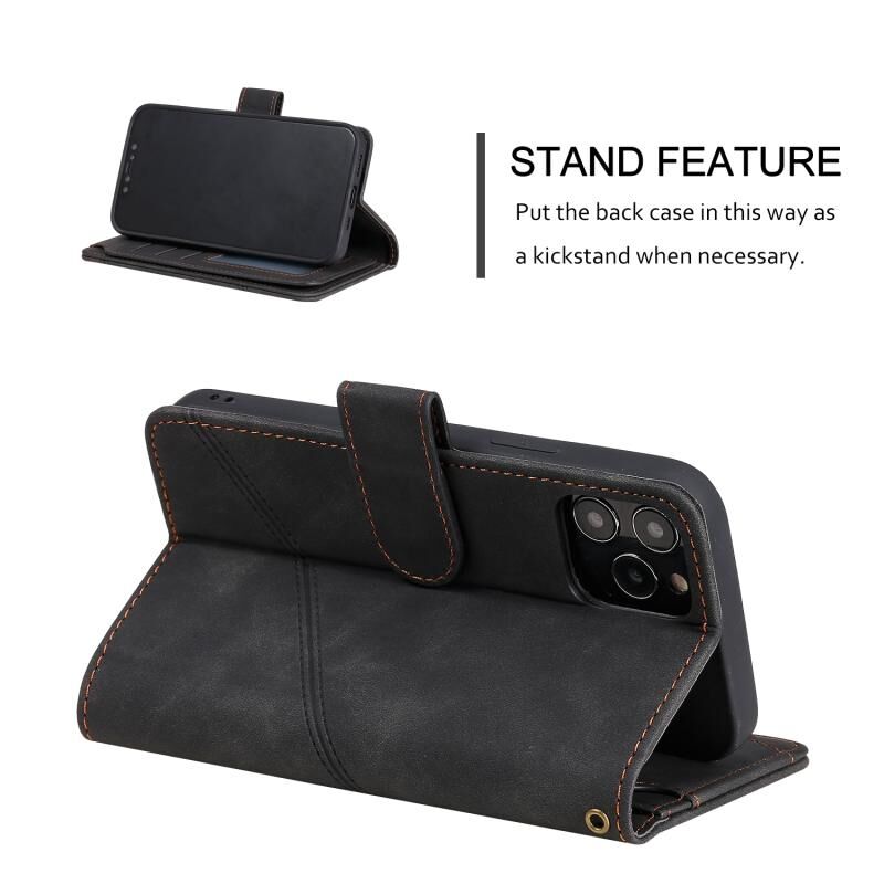 For iPhone 12 Pro Max Skin Feel Business Horizontal Flip PU Leather Case with Holder & Multi-Card Slots & Wallet & Lanyard & Photo Frame(Black)