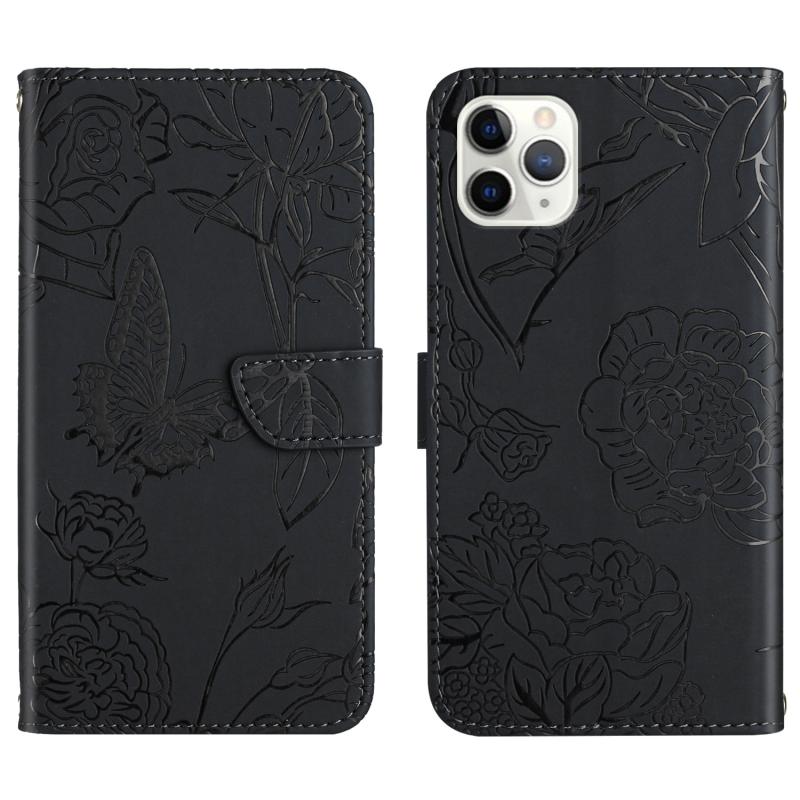 For iPhone 12 Pro Max Skin Feel Butterfly Peony Embossed Leather Phone Case(Black)