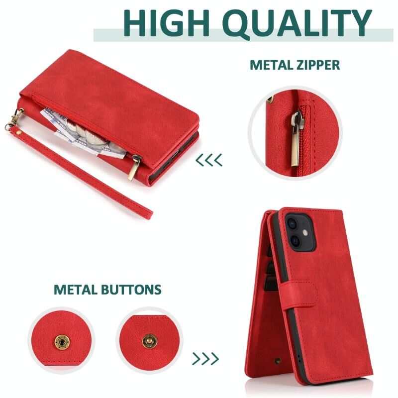 Θήκη για iPhone 12 Pro Max με υφή τρελού αλόγου, αίσθηση δέρματος, οριζόντια θήκη flip με φερμουάρ, με βάση στήριξης, θήκες καρτών, πορτοφόλι και λουρί (Σκούρο Πράσινο)
