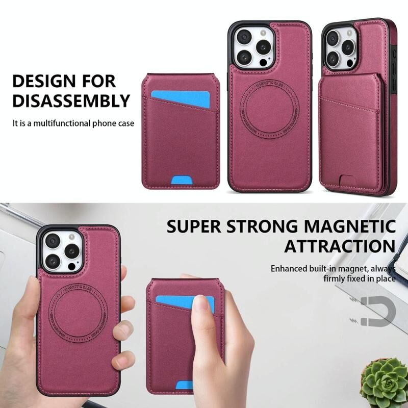 Θήκη κινητού για iPhone 12 Pro Max με αίσθηση δέρματος, αποσπώμενη τσέπη για κάρτες και MagSafe (Κρασί)