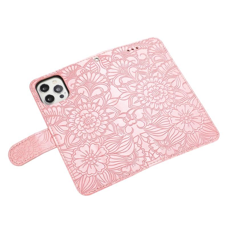 Θήκη δέρματος οριζόντιας αναδίπλωσης για iPhone 12 Pro Max με υφή δέρματος, ανάγλυφο ηλίανθο, με βάση στήριξης, θήκες για κάρτες, πορτοφόλι & λουρί (Μωβ)