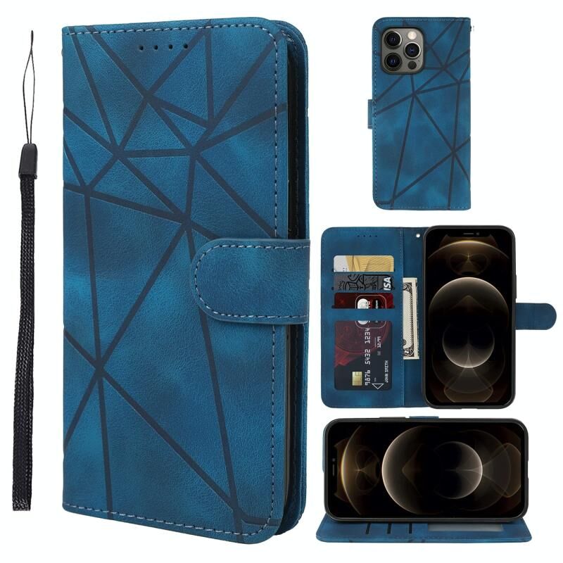 Θήκη τηλεφώνου δερμάτινη με γεωμετρικά σχέδια και αίσθηση αφής για iPhone 12 Pro Max (Μπλε)