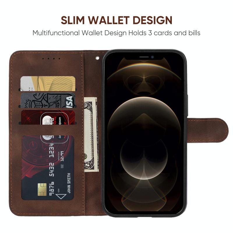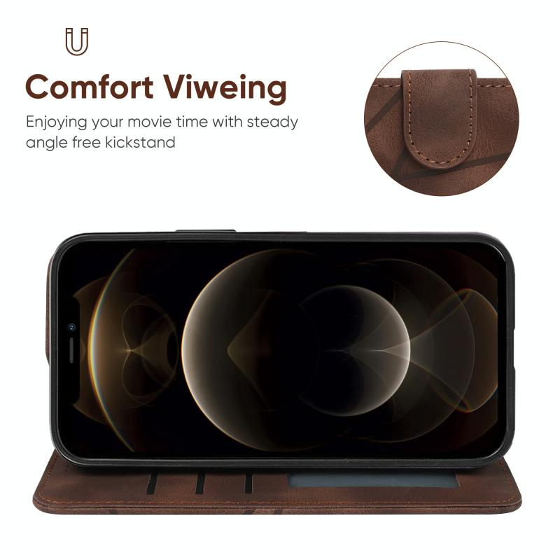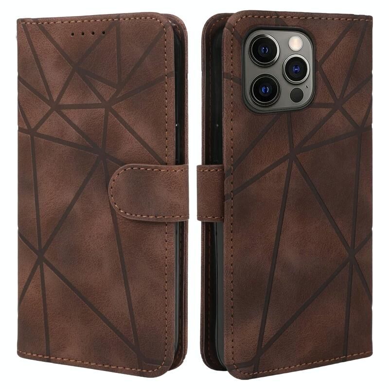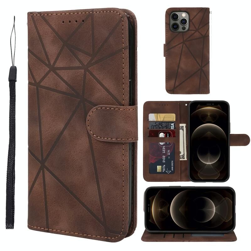 For iPhone 12 Pro Max Skin Feel Geometric Lines Leather Phone Case(Brown)