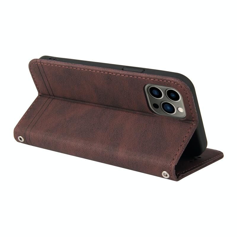 Θήκη δέρματος οριζόντιας αναδίπλωσης για iPhone 12 Pro Max με αίσθηση δέρματος, σχέδιο Δέντρο της Ζωής, μεταλλικά κουμπιά, με βάση, θήκη για κάρτες, πορτοφόλι, κορνίζα φωτογραφιών και λουρί (Κόκκινο)