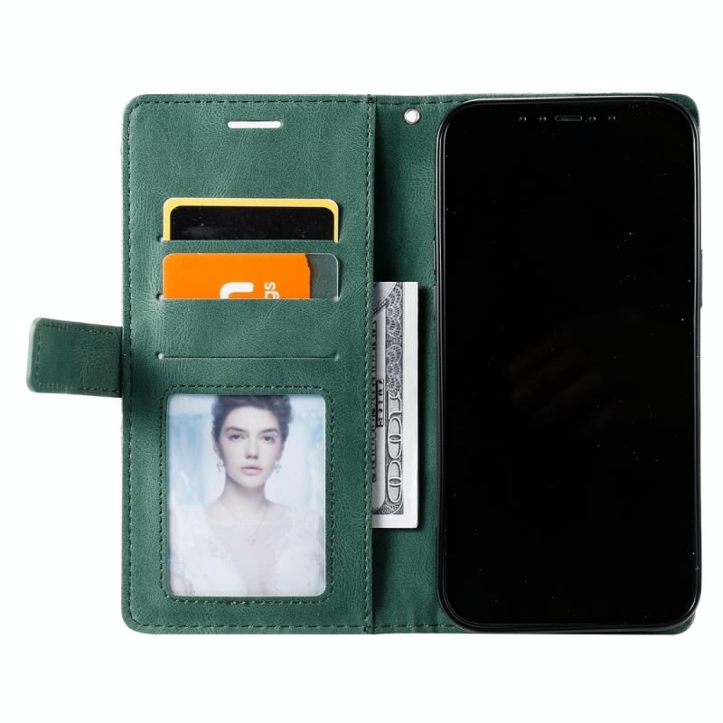 Θήκη δέρματος οριζόντιας αναδίπλωσης για iPhone 12 Pro Max με αίσθηση δέρματος, ραφές και θήκη, υποδοχές καρτών, πορτοφόλι και κορνίζα φωτογραφιών (Μπλε)