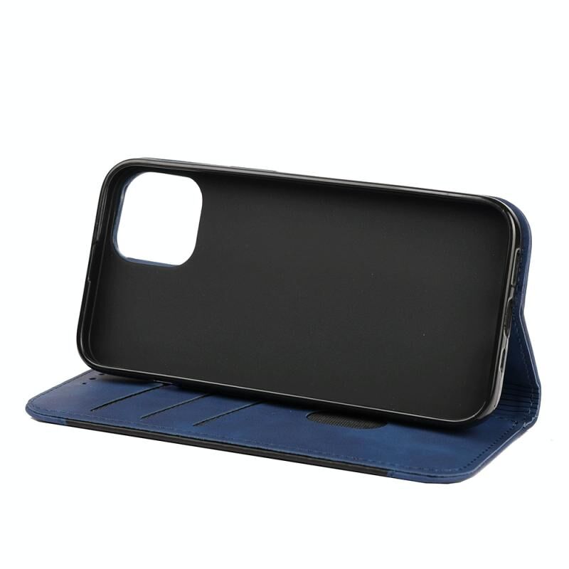 For iPhone 12 Pro Max Skin Feel Splicing Leather Phone Case(Blue)