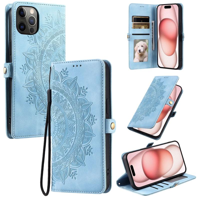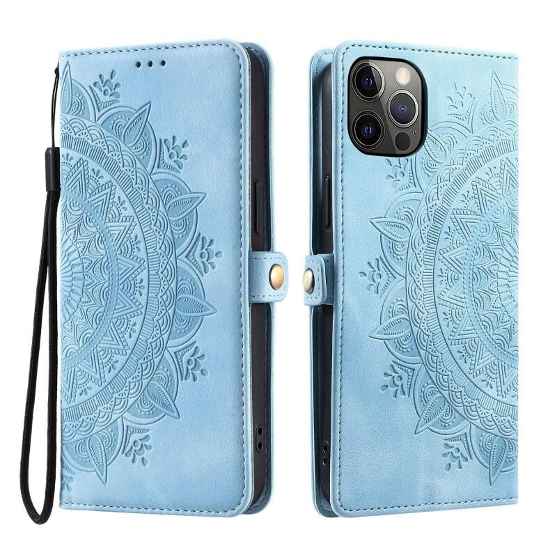 For iPhone 12 Pro Max Skin Feel Totem Embossed Leather Phone Case(Blue)