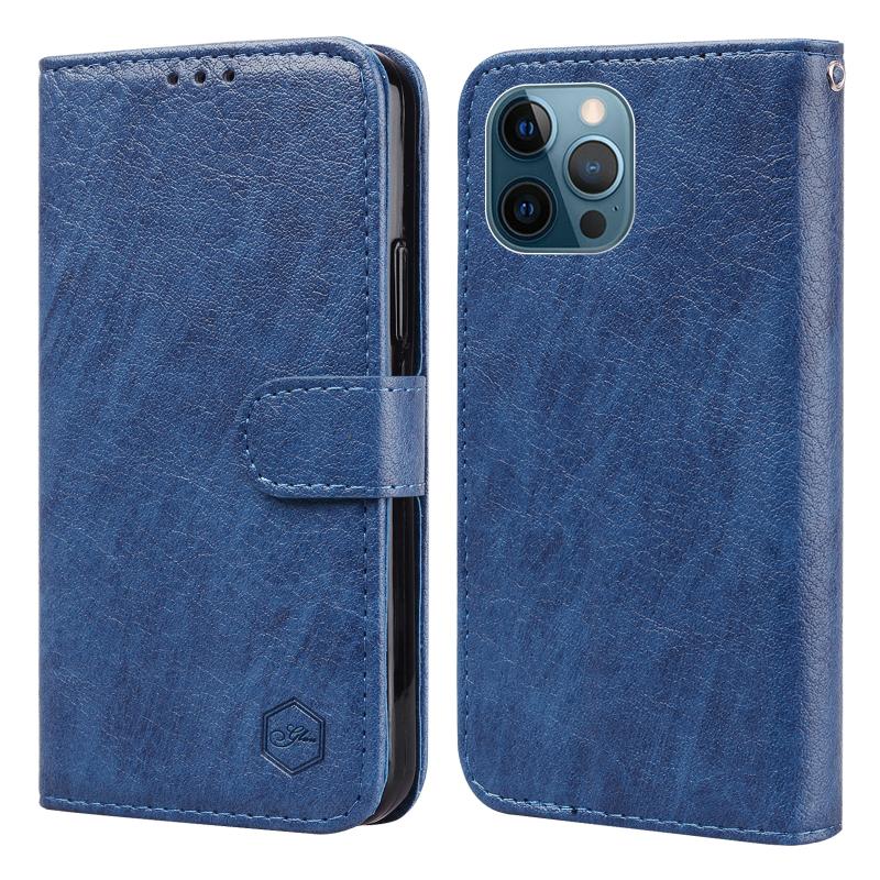 Θήκη κινητού τηλεφώνου για iPhone 12 Pro Max με υφή δέρματος λάδι και αίσθηση δέρματος, PU + TPU (Σκούρο Μπλε)