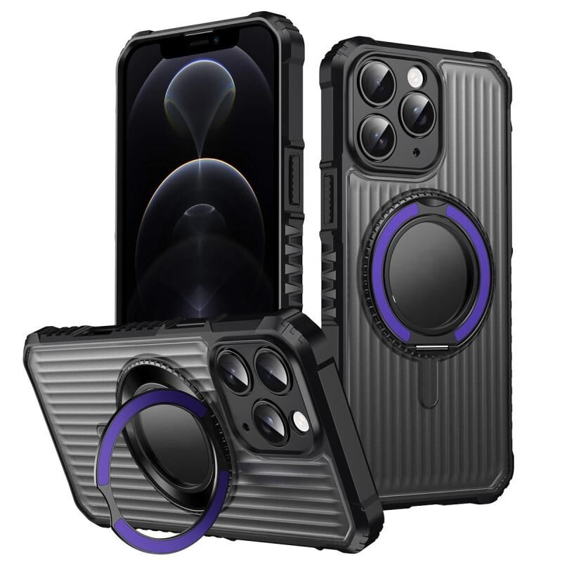 For iPhone 12 Pro Max Skin Sense Rotation Stand Semi-transparent Magsafe Phone Case(Deep Purple)