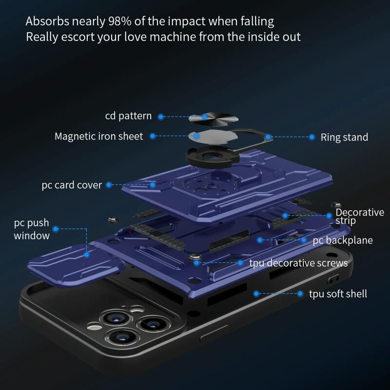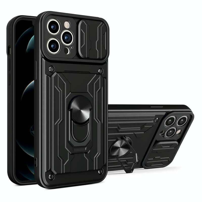For iPhone 12 Pro Max Sliding Camshield Card Phone Case(Black)