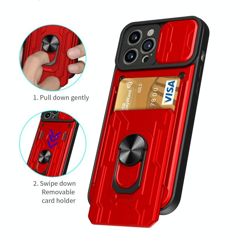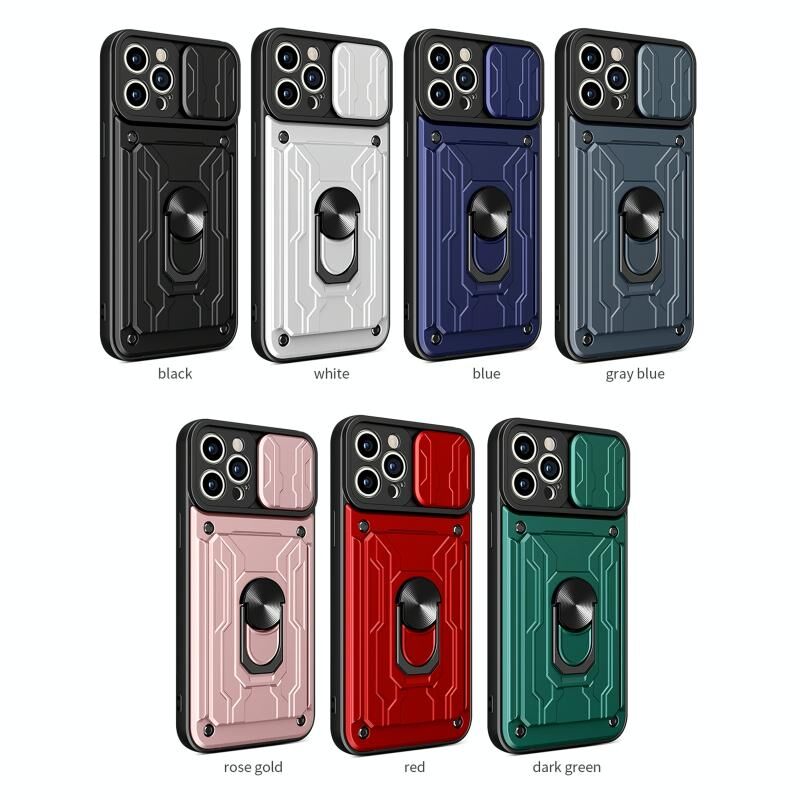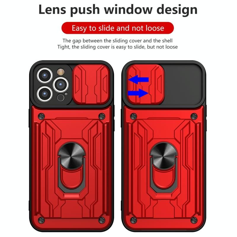 For iPhone 12 Pro Max Sliding Camshield Card Phone Case(Grey Blue)