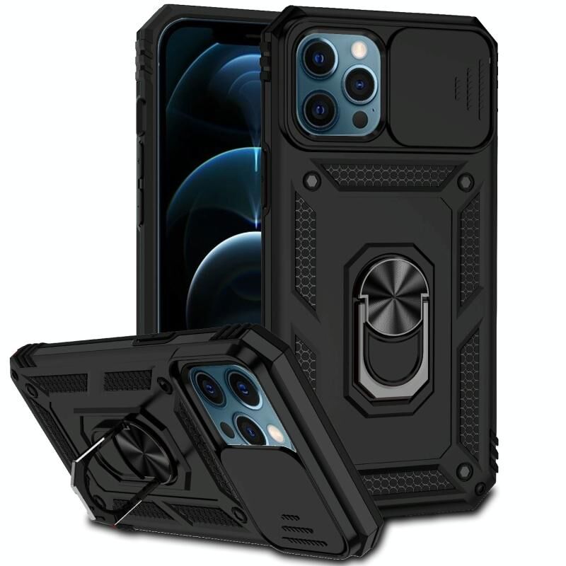 For iPhone 12 Pro Max Sliding Camshield Holder Phone Case(Black)