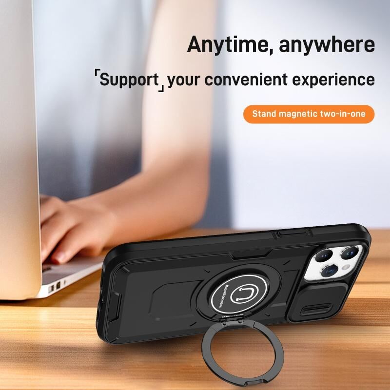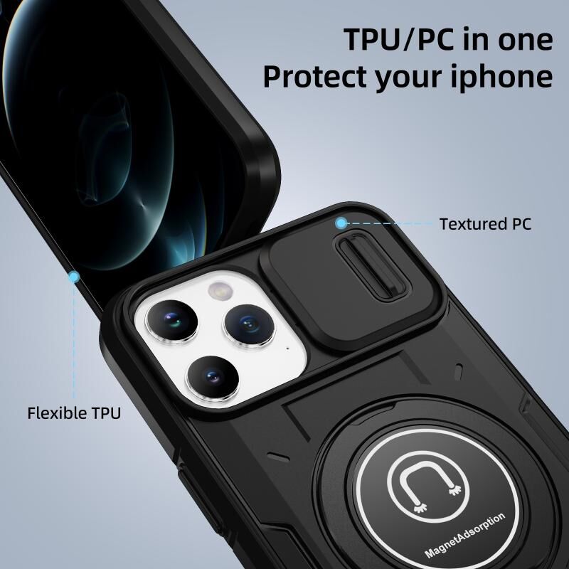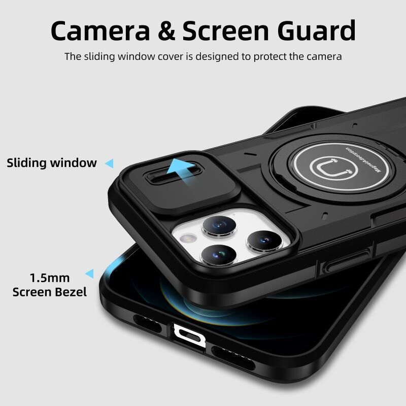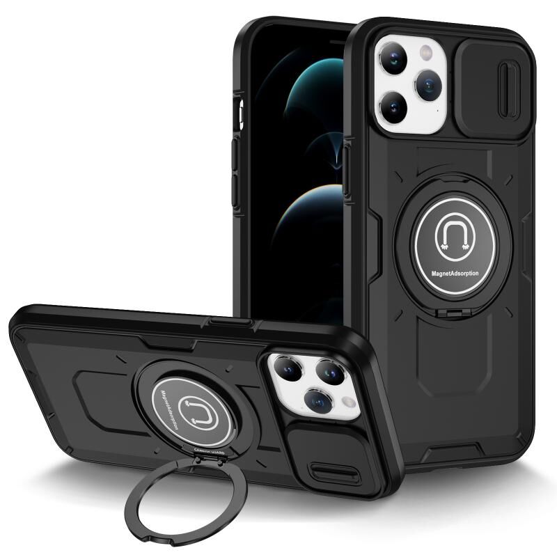 For iPhone 12 Pro Max Sliding Camshield TPU Hybrid PC Magnetic Holder Phone Case(Black)