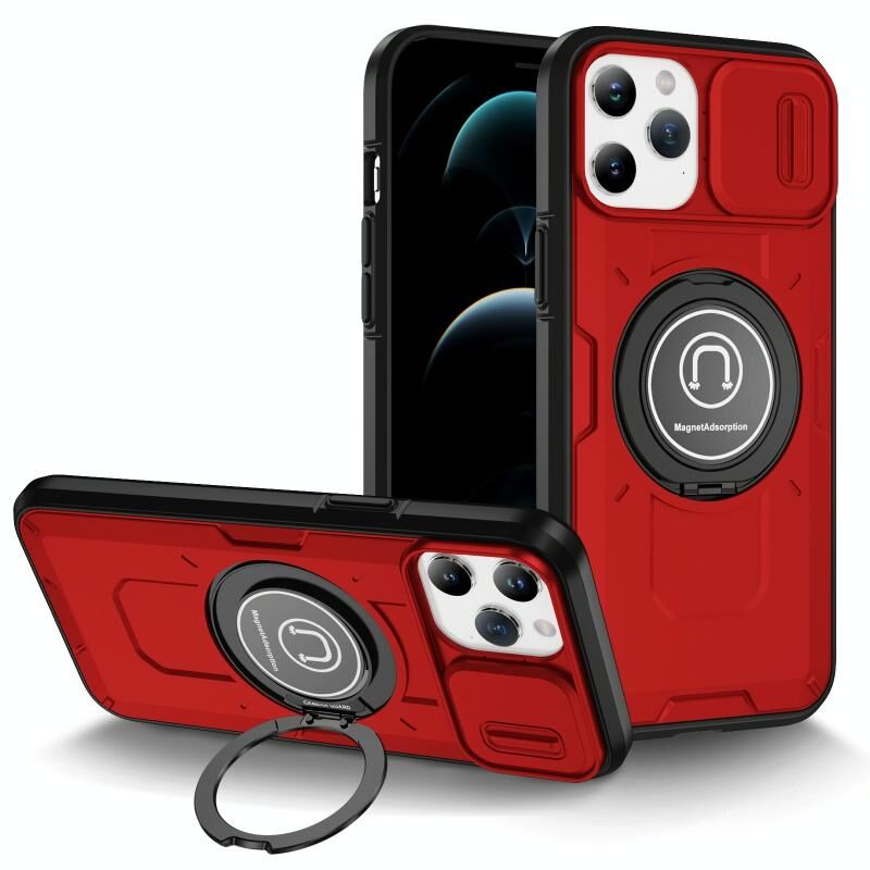 For iPhone 12 Pro Max Sliding Camshield TPU Hybrid PC Magnetic Holder Phone Case(Red)