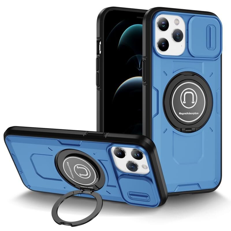 For iPhone 12 Pro Max Sliding Camshield TPU Hybrid PC Magnetic Holder Phone Case(Sky Blue)