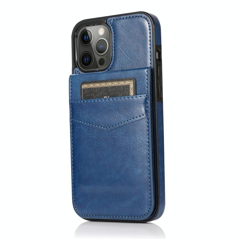 For iPhone 12 Pro Max Solid Color PC + TPU Protective Case with Holder & Card Slots(Blue)
