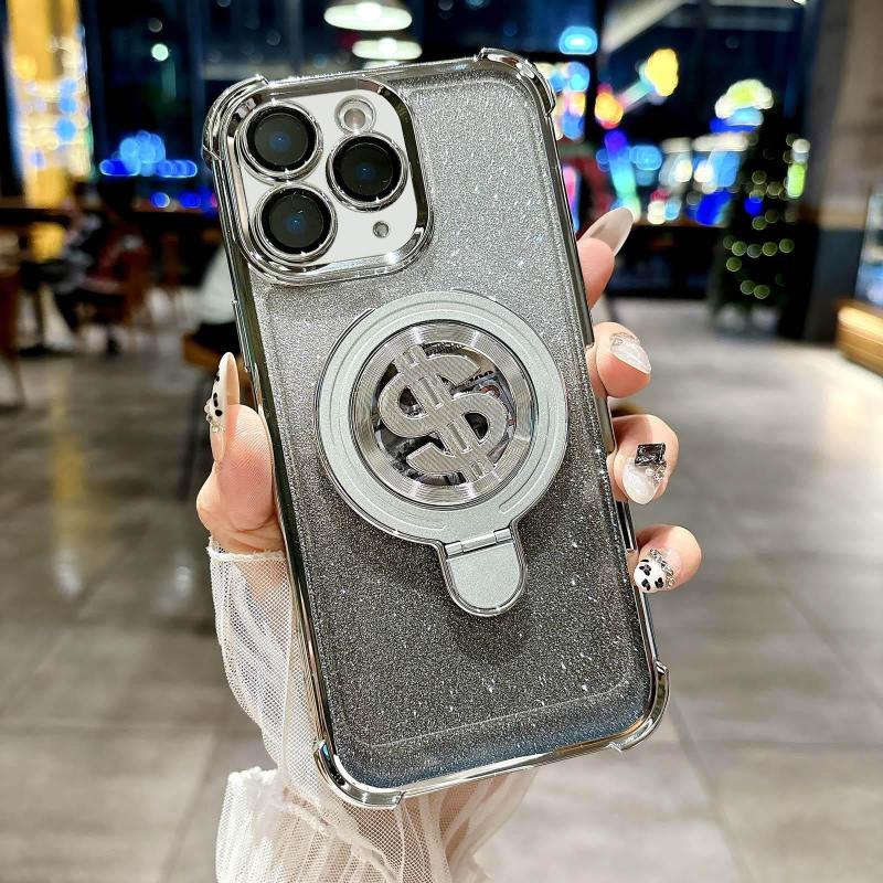 For iPhone 12 Pro Max Space Gradient Glitter MagSafe Holder Phone Case with Lens Film(Silver)