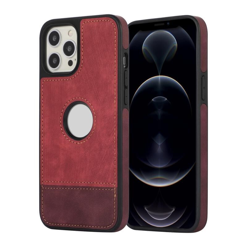 Θήκη τηλεφώνου για iPhone 12 Pro Max από PU δέρμα με ραφές και κοψίματα (Κόκκινη)