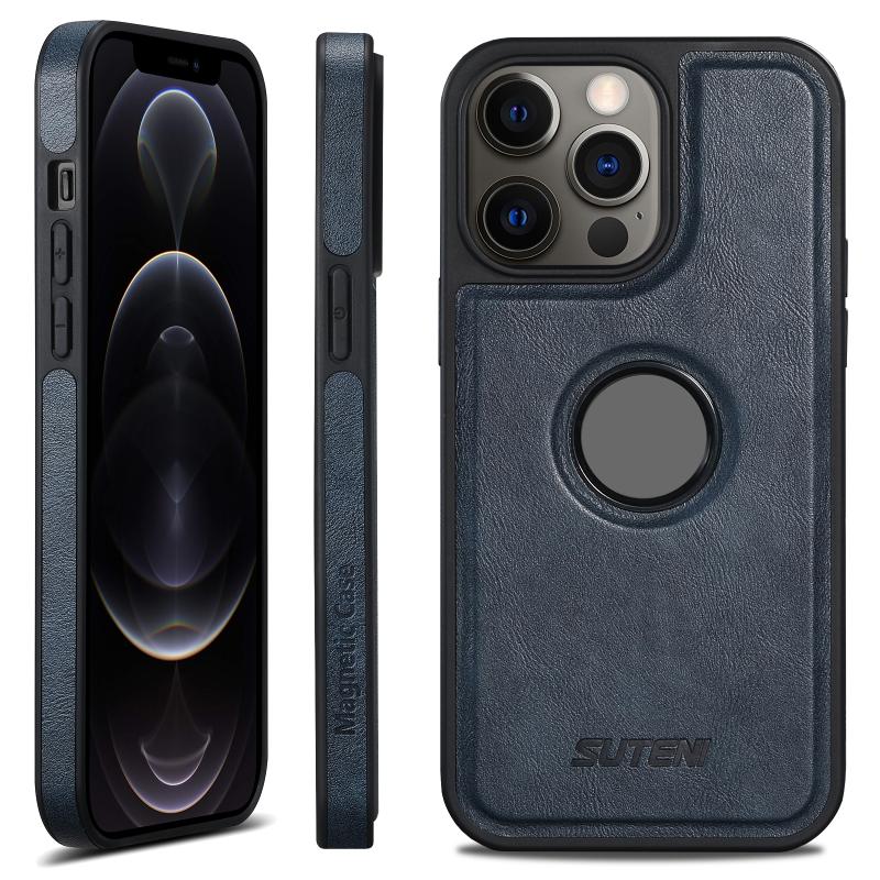 For iPhone 12 Pro Max Suteni G1 Magsafe Leather Back Phone Case(Blue) (Suteni)
