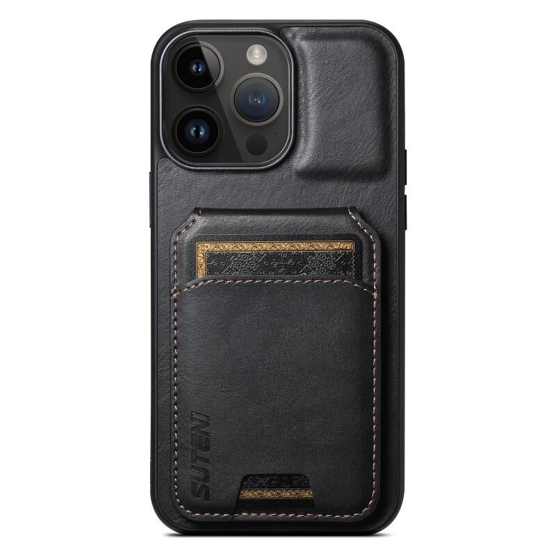 Θήκη κινητού τηλεφώνου Suteni H02 από δέρμα με βάση και προστασία για iPhone 12 Pro Max (Μαύρο) (Suteni)