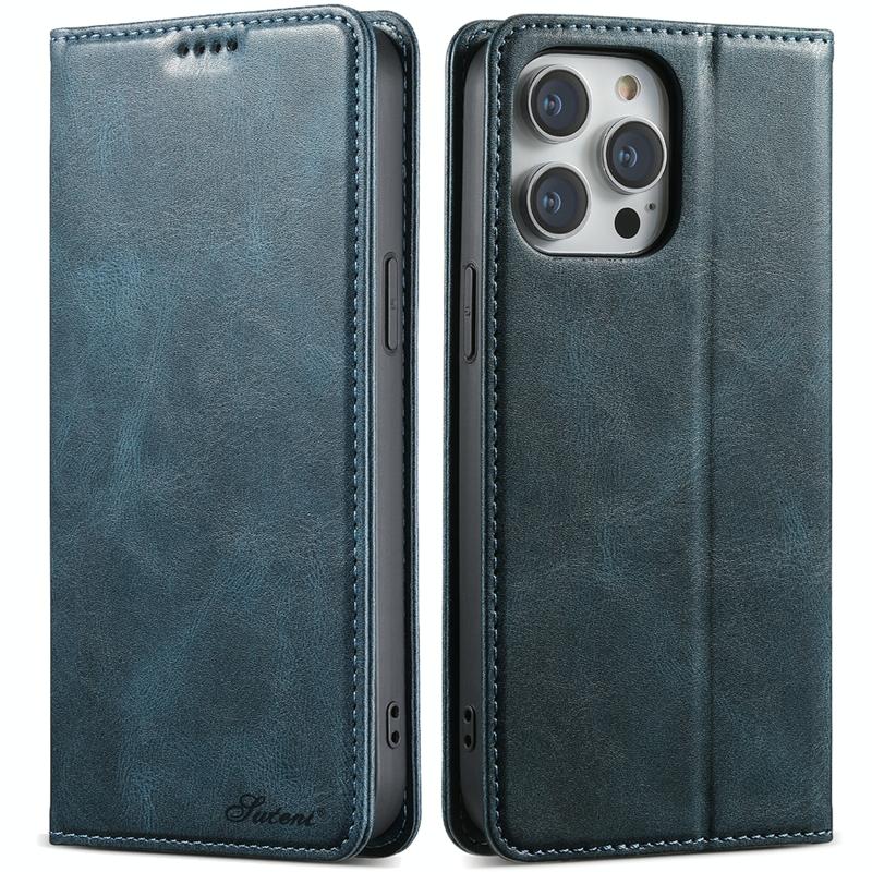 For iPhone 12 Pro Max Suteni J02 Oil Wax Wallet Leather Phone Case(Blue) (Suteni)
