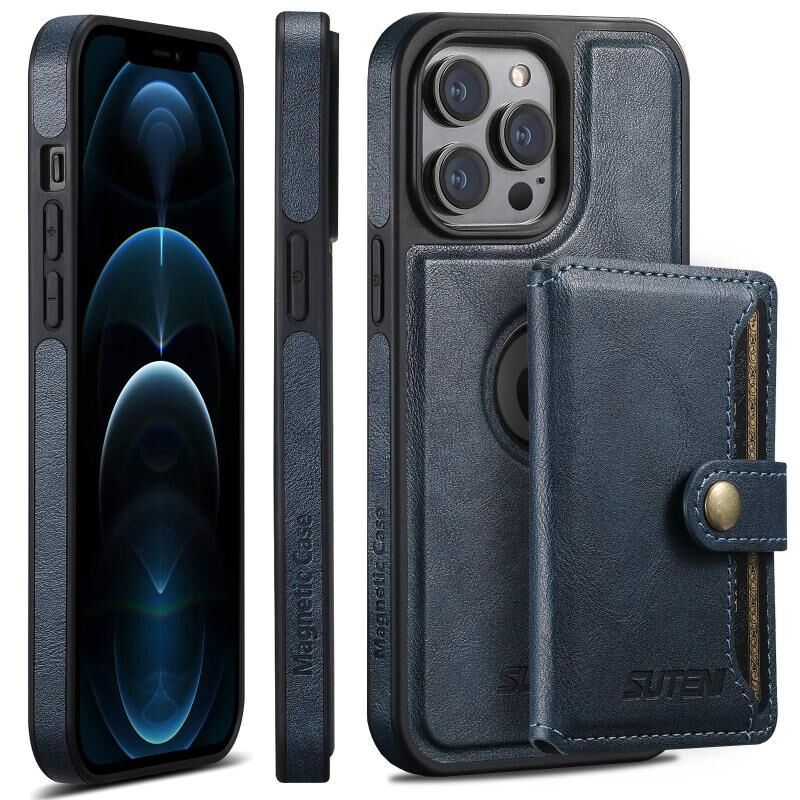 Θήκη τηλεφώνου για iPhone 12 Pro Max Suteni M1 Oil Wax MagSafe αποσπώμενη οριζόντια θήκη καρτών (Μαύρο) (Suteni)