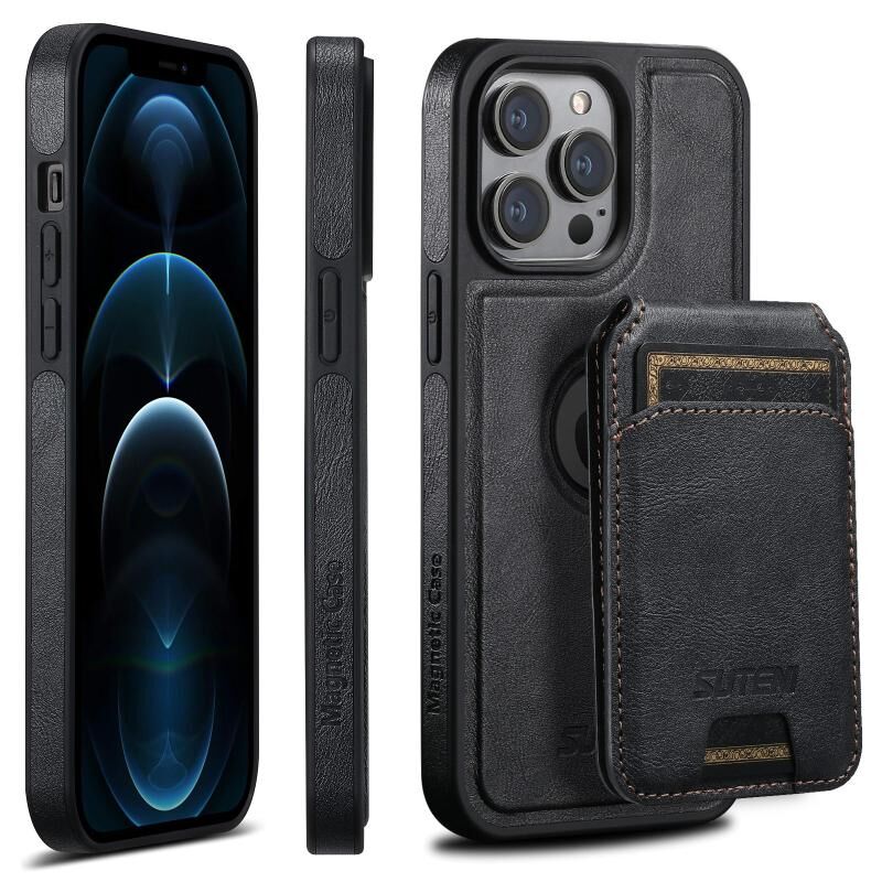 Θήκη τηλεφώνου για iPhone 12 Pro Max Suteni M2 Oil Wax MagSafe Οριζόντια Θήκη Κάρτας (Μαύρο) (Suteni)