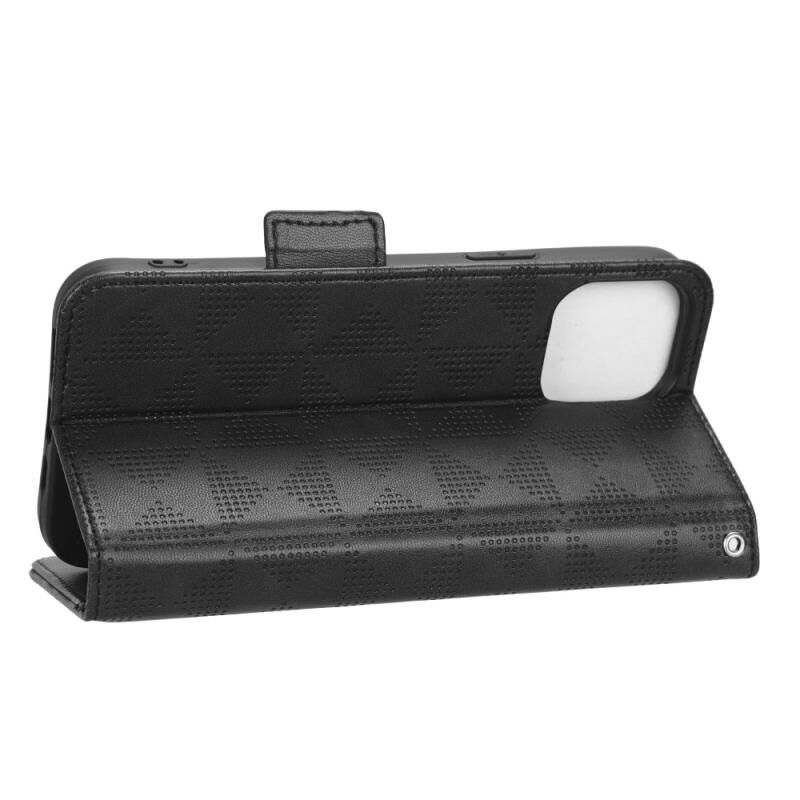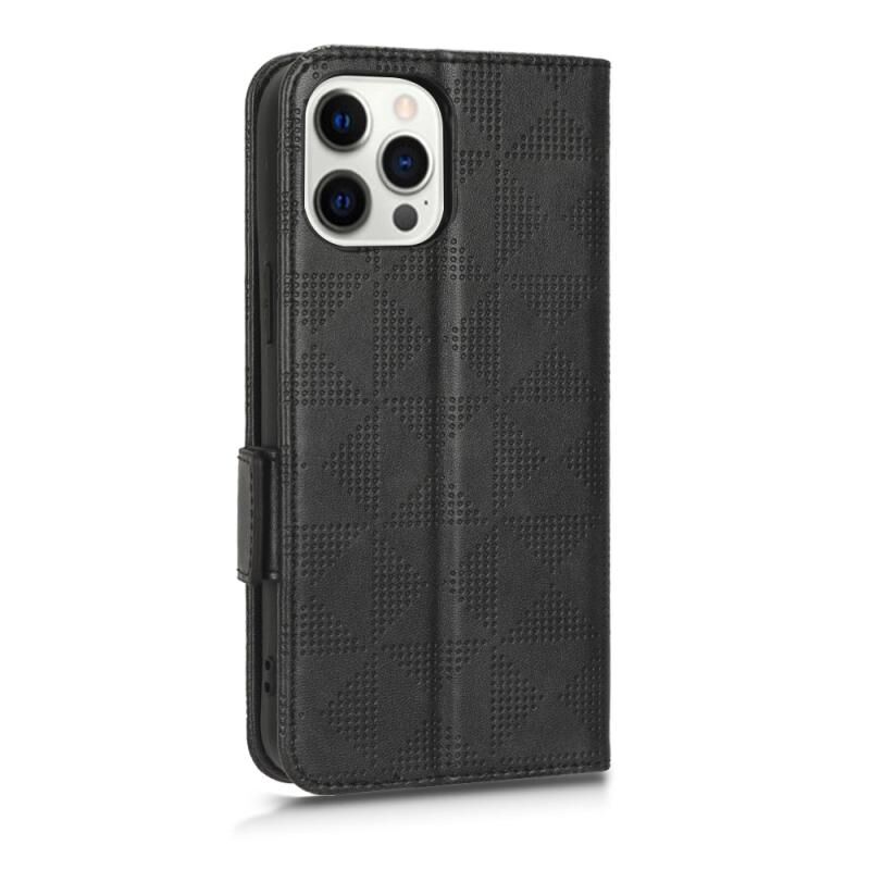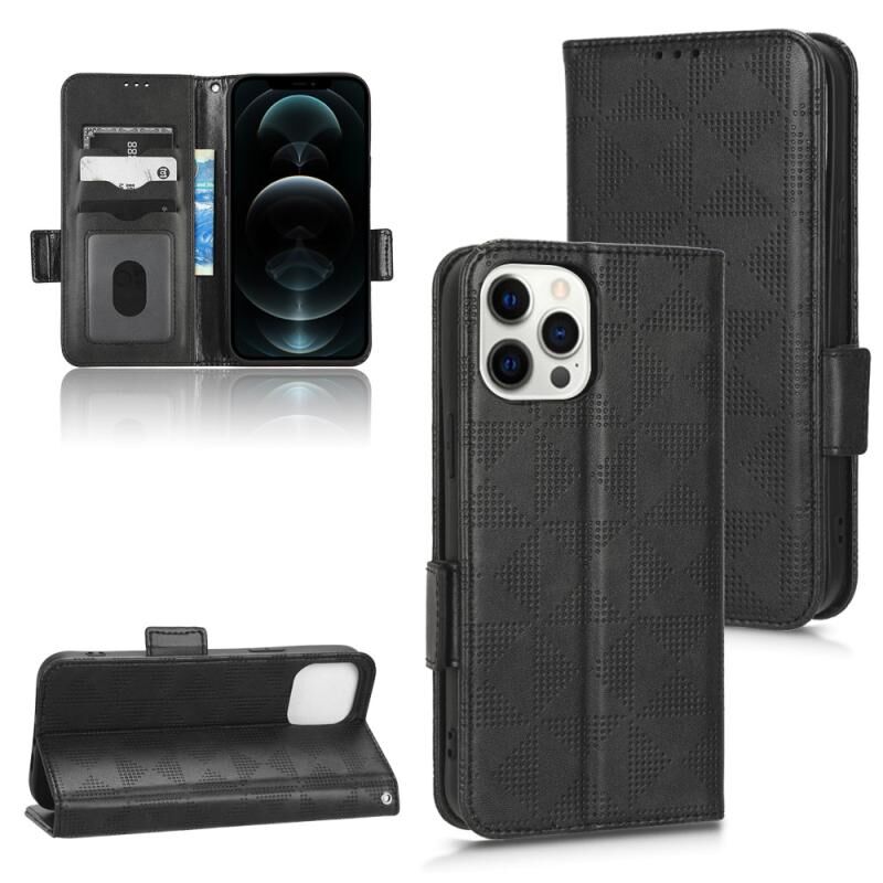 For iPhone 12 Pro Max Symmetrical Triangle Leather Phone Case(Black)