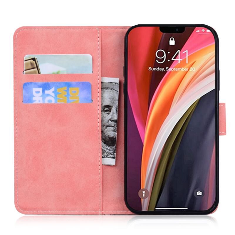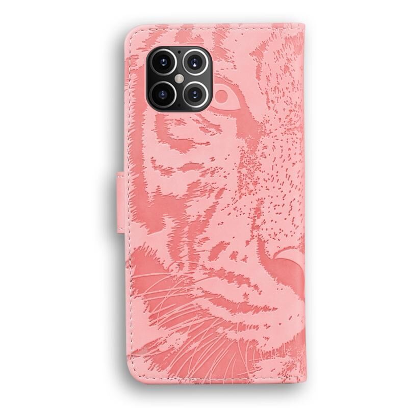 Θήκη δέρματος οριζόντιας αναδίπλωσης για iPhone 12 Pro Max με σχέδιο ανάγλυφου τίγρη, με βάση & υποδοχές καρτών & πορτοφόλι (Ροζ)