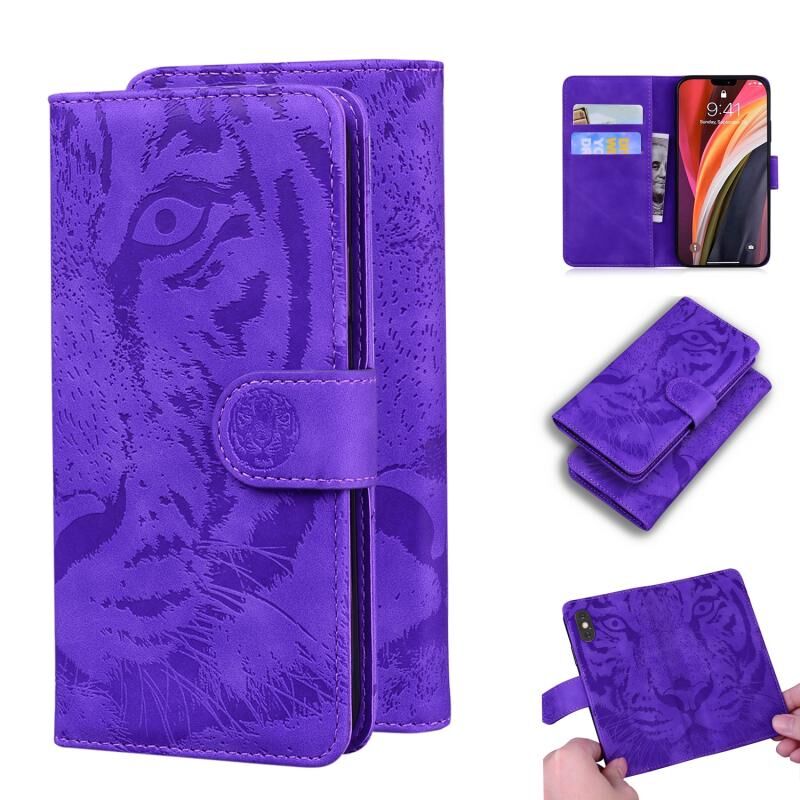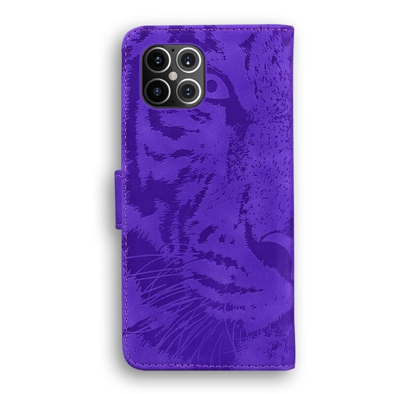 Θήκη δέρματος οριζόντιας αναδίπλωσης για iPhone 12 Pro Max με μοτίβο ανάγλυφου τίγρη, με βάση & υποδοχές καρτών & πορτοφόλι (Μαύρο)