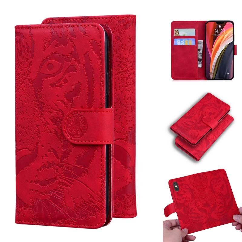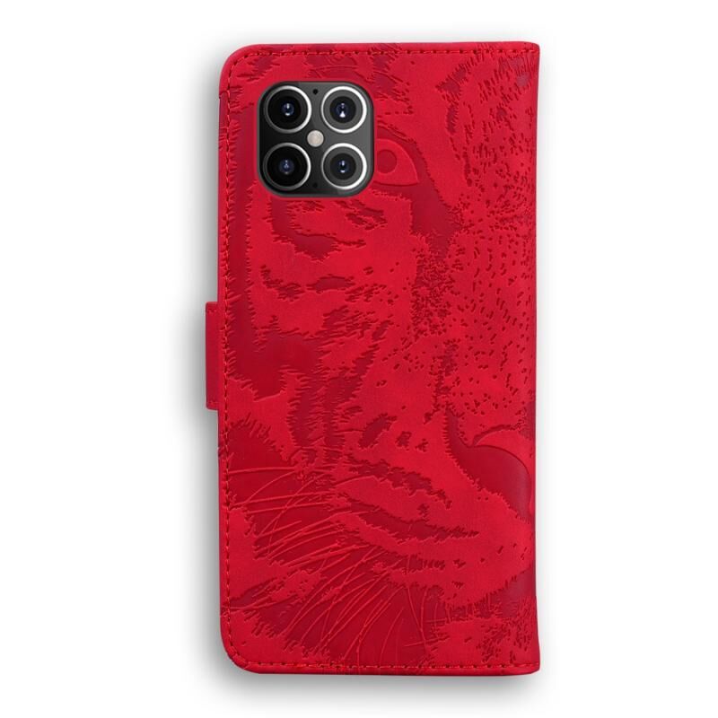Θήκη δέρματος οριζόντιας αναδίπλωσης για iPhone 12 Pro Max με μοτίβο ανάγλυφου τίγρη, με βάση & υποδοχές καρτών & πορτοφόλι (Μαύρο)