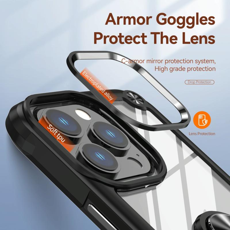 Θήκη iPhone 12 Pro Max με Προστασία Φακού & Δαχτυλίδι Στήριξης (Μαύρο)