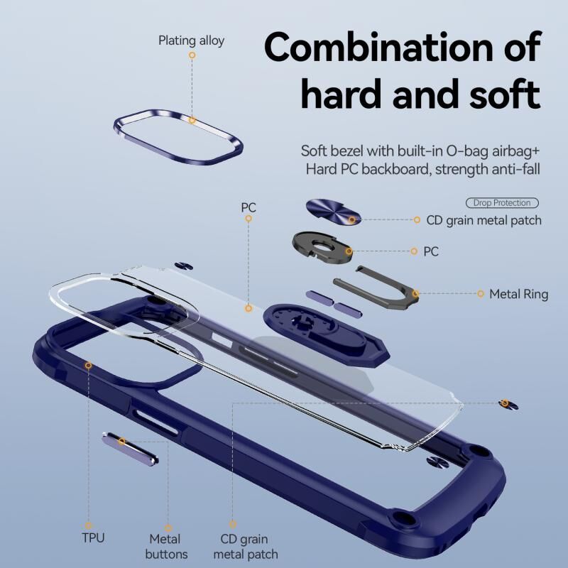 Θήκη iPhone 12 Pro Max με Προστασία Φακού & Δαχτυλίδι Στήριξης (Μπλε)