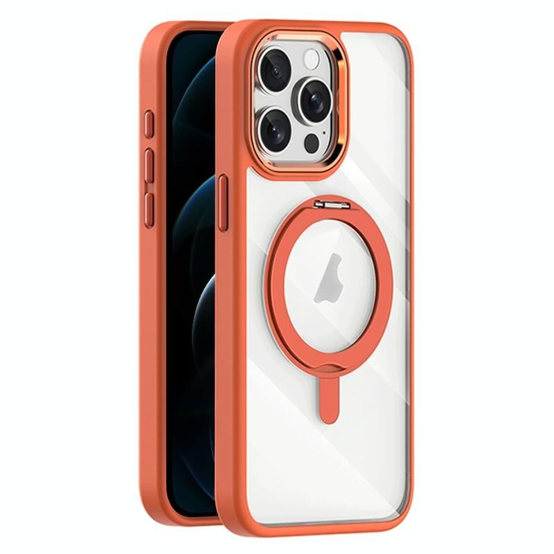 Θήκη τηλεφώνου για iPhone 12 Pro Max Διαφανής Μαγνητική Περιστρεφόμενη Βάση MagSafe (Πορτοκαλί)
