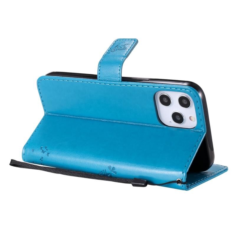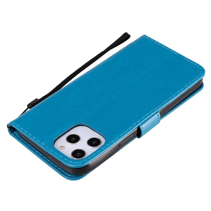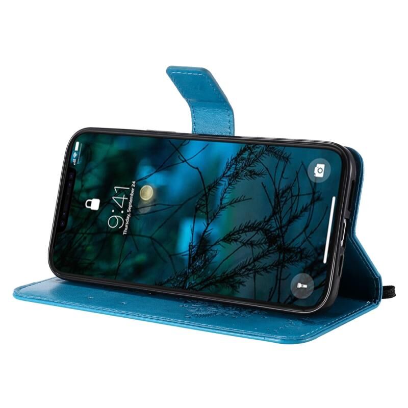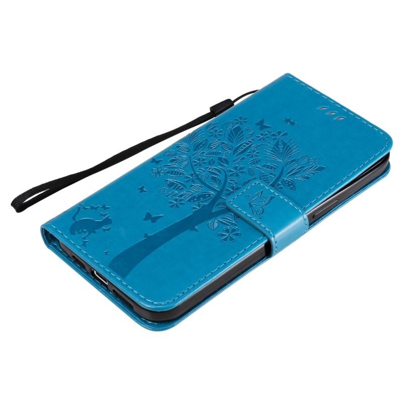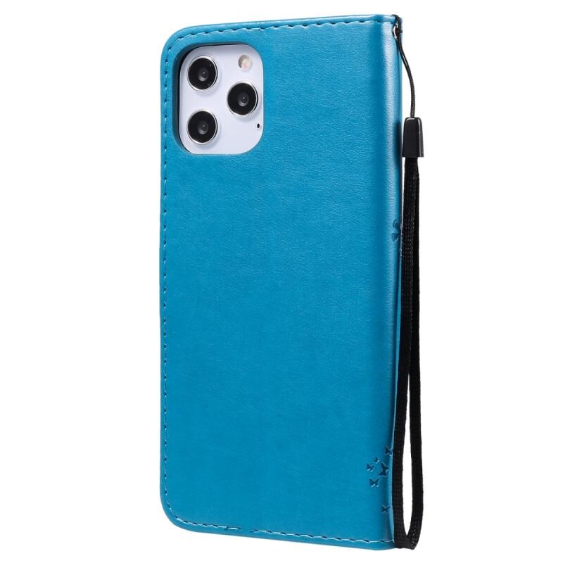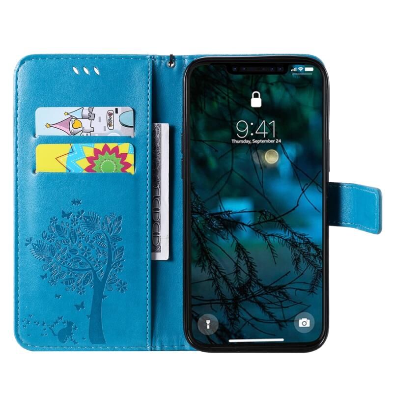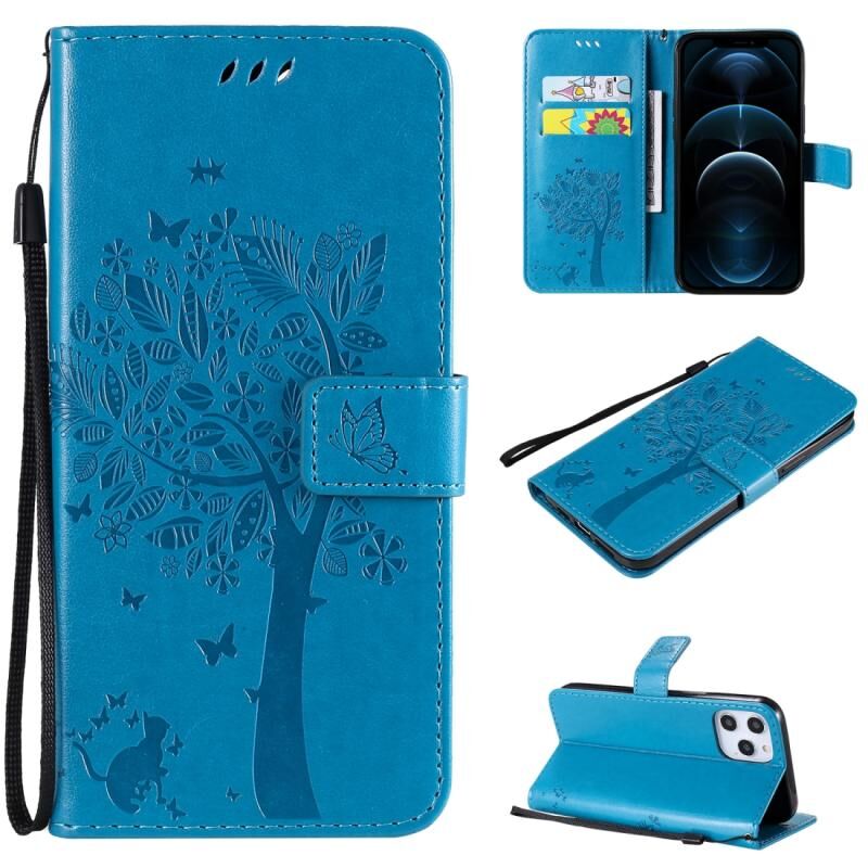 Θήκη για iPhone 12 Pro Max, Δερμάτινη οριζόντια με αναδιπλούμενο καπάκι, με σχέδιο δέντρου & γάτας σε ανάγλυφο, με βάση στήριξης, θήκες για κάρτες, πορτοφόλι & λουρί (Μπλε)