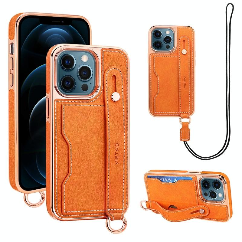 For iPhone 12 Pro Max VIETAO Card Slot Wristband Phone Case with Lanyard(Orange) (VIETAO)