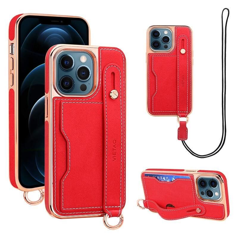 Θήκη κινητού τηλεφώνου VIETAO για iPhone 12 Pro Max με θήκη κάρτας, λουρί καρπού και κορδόνι (Κόκκινο) (VIETAO)