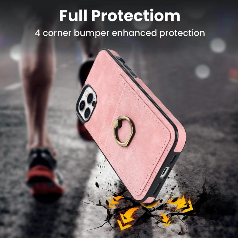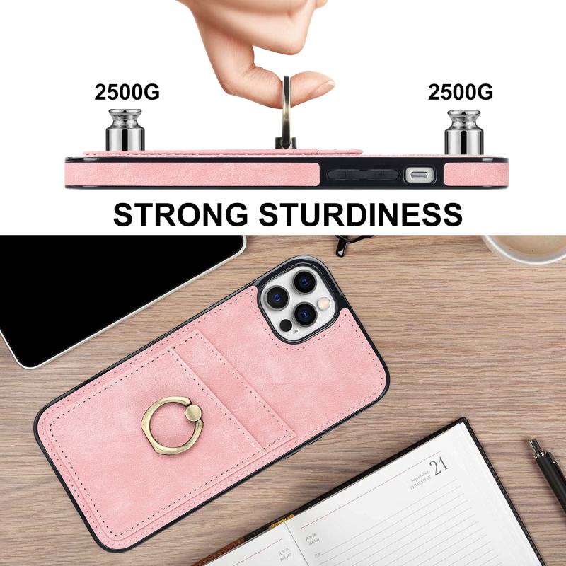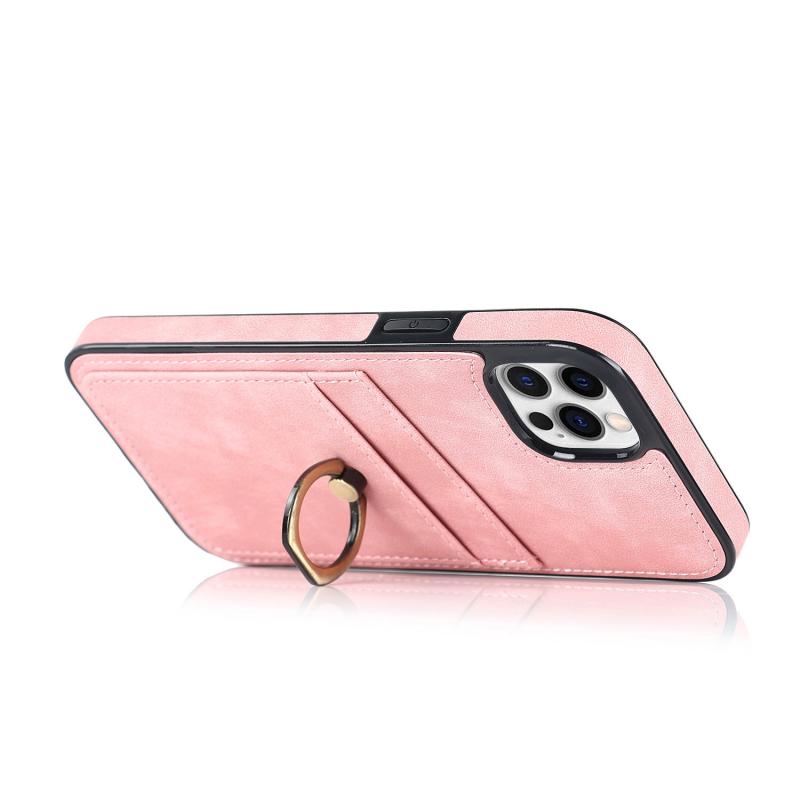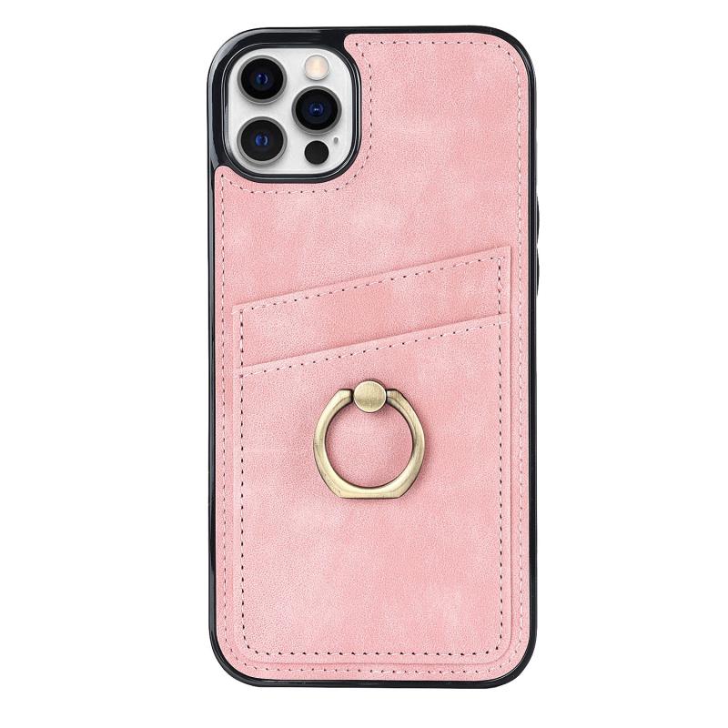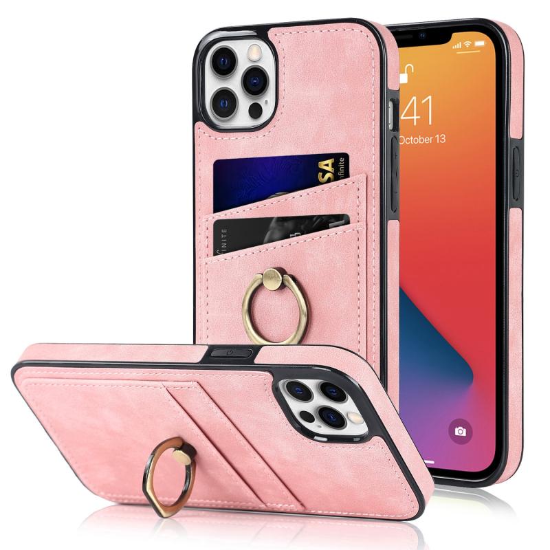 Θήκη iPhone 12 Pro Max Δερμάτινη Vintage με Δαχτυλίδι Στήριξης (Ροζ)