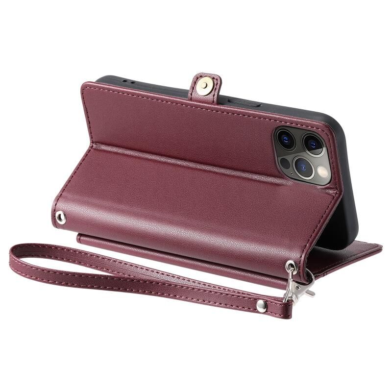 For iPhone 12 Pro Max Wallet Multi-card Slot Leather Phone Case with Lanyard(Wine Red)
