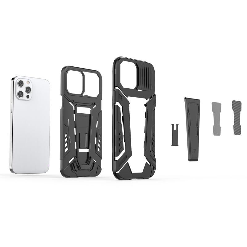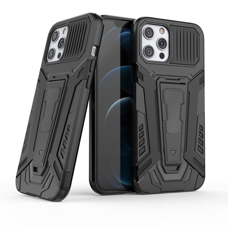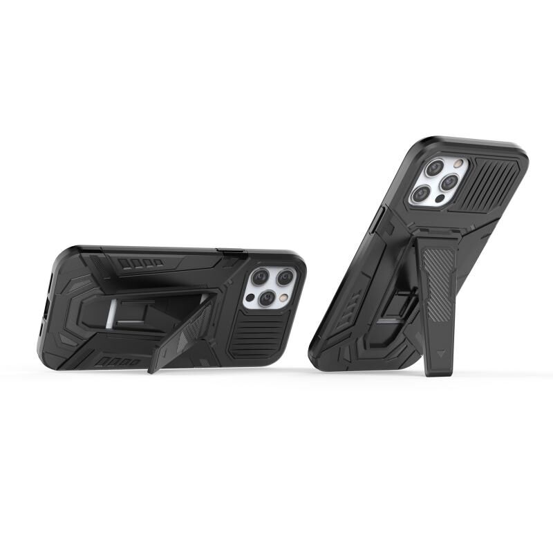 Θήκη προστασίας για iPhone 12 Pro Max σειράς War Chariot, πλήρως προστατευτική, αντικραδασμική από PC + TPU με αόρατη βάση στήριξης (Μαύρο)