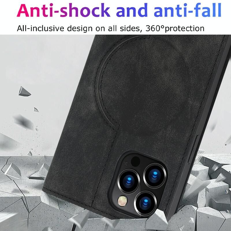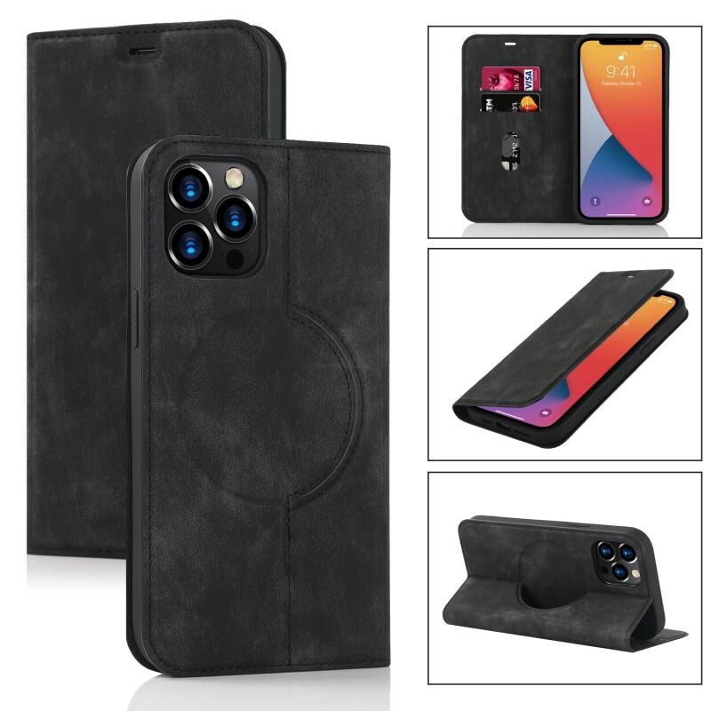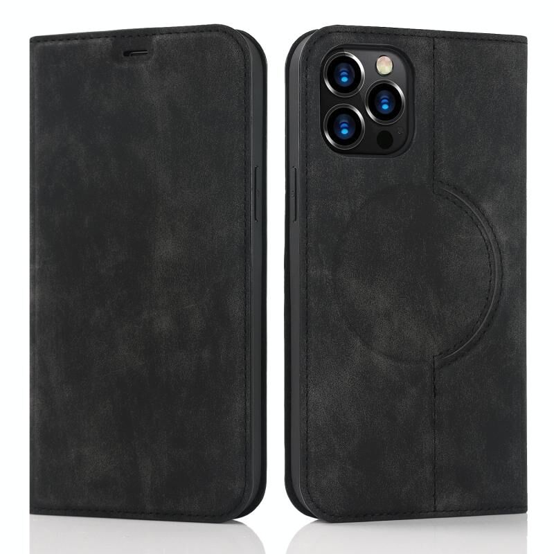 For iPhone 12 Pro Max Wireless Charging Magsafe Leather Phone Case(Black)