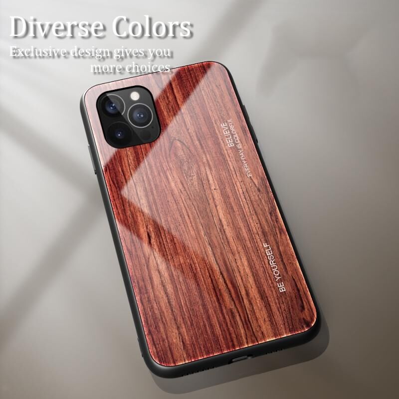 Θήκη για iPhone 12 Pro Max με υφή ξύλου, από σκληρυμένο γυαλί + TPU αντικραδασμική (M05)