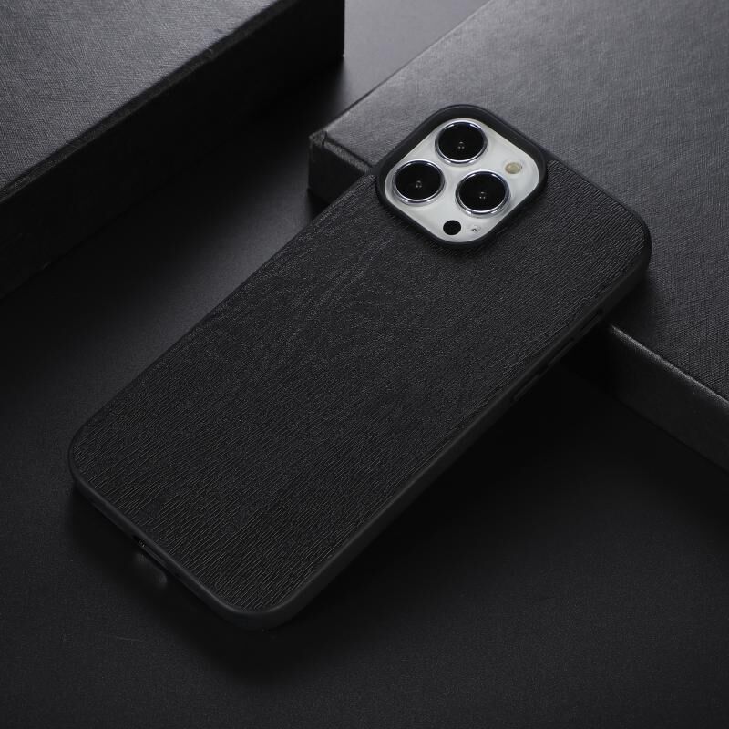 Θήκη τηλεφώνου για iPhone 12 Pro Max με υφή ξύλου από PU (Μαύρο)
